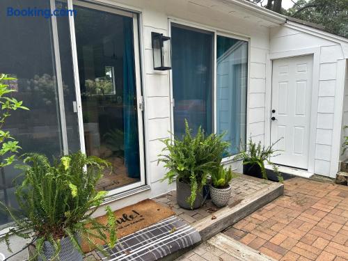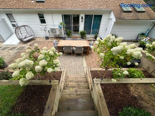 About the Space – 2 bedrooms, 1 bathroom (sleeps 6) – Bedroom 1: Queen bed – Bedroom 2: Queen bed – Full kitchen with modern appliances – Comfortable living + dining area – Smart TV + high‑speed Wi‑Fi – Washer + dryer – Central A/C + heating – Saltwater pool with sun loungers – Fire pit + outdoor dining area – Outdoor shower – Single‑level home, no stairs – Free on‑site parking – Self check-in via smart lock Local Highlights ~ Things to Do – Long Beach — 4 min drive – Sag Harbor Village — 7 min drive – Mashashimuet Park — 8 min drive – Wolffer Estate Vineyard — 12 min drive – Havens Beach — 10 min drive Coffee & Dining – Sagtown Coffee — 7 min drive – Estia’s Little Kitchen — 4 min drive – Sen Restaurant — 7 min drive – Dockside Bar & Grill — 7 min drive – Carissa’s Bakery — 12 min drive We love slow afternoons by the pool and sunset visits to Long Beach, both just minutes away.