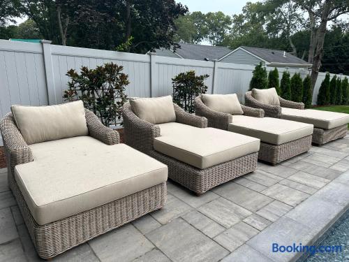 – Pets allowed with approval – Exterior cameras monitor entry points only – Quiet hours: 10PM–7AM – Pool is unheated unless noted in booking FAQ ➤ How close is the beach? Long Beach is just a 4‑minute drive away. ➤ Is the pool private? Yes, the saltwater pool is fully private and for guest use only. ➤ Are pets allowed? Yes, pets are welcome with prior approval. Meet the Host ❤︎ We love sharing this peaceful Sag Harbor retreat with guests. If you need recommendations or assistance during your stay, we’re only a message away. – Hasmik